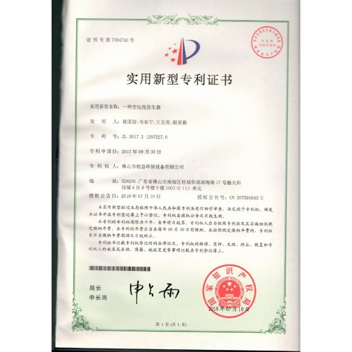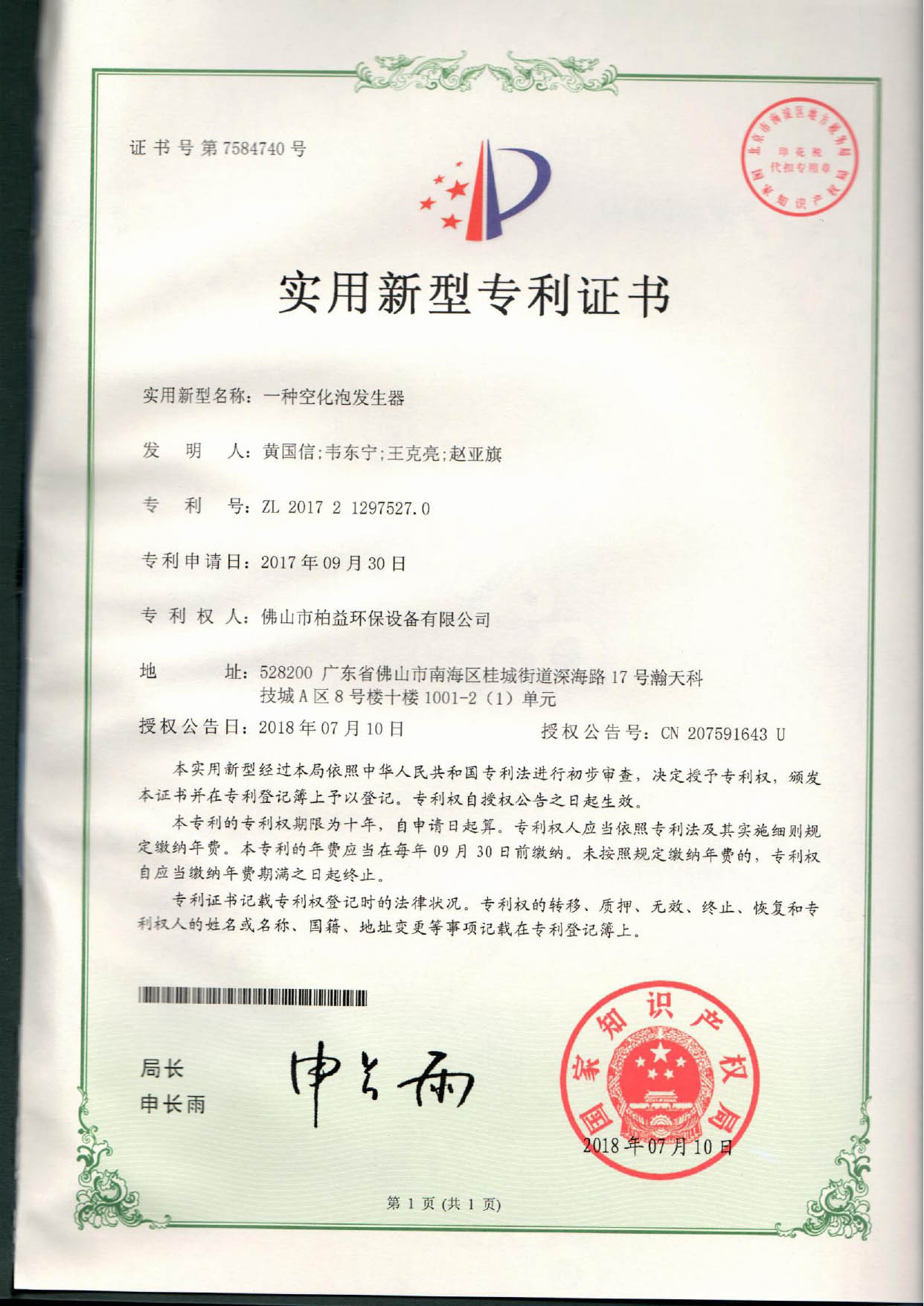 上一篇: 剪切式的空化泡發生器實用新型專利證書